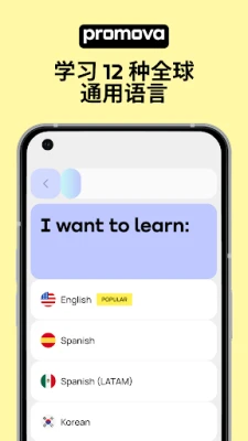 开启您的个性化语言学习之旅!Promova提供基于您兴趣的实用词汇、生动插画课程、精炼短课、趣味测验及听说练习。我们涵盖12种语言:英语、西班牙语、法语、阿拉伯语、中文、德语、韩语、意大利语、葡萄牙语、美国手语和乌克兰语,助您从零开始,轻松实现语言精通。